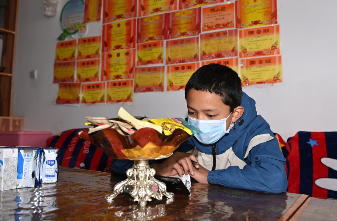 这是西藏儿童福利院的孩子在上网课。记者 旦增西旦 摄