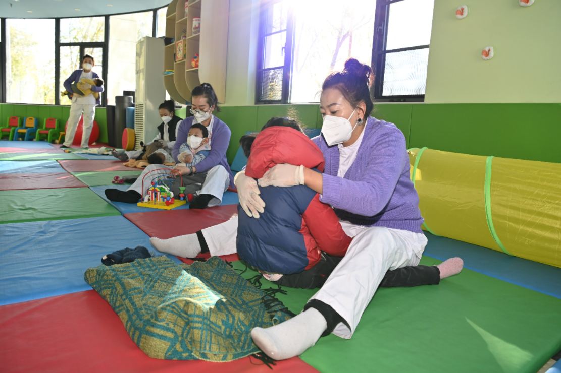 这是自治区残疾人康复服务中心的工作人员正在为儿童进行康复训练。记者 旦增西旦 摄