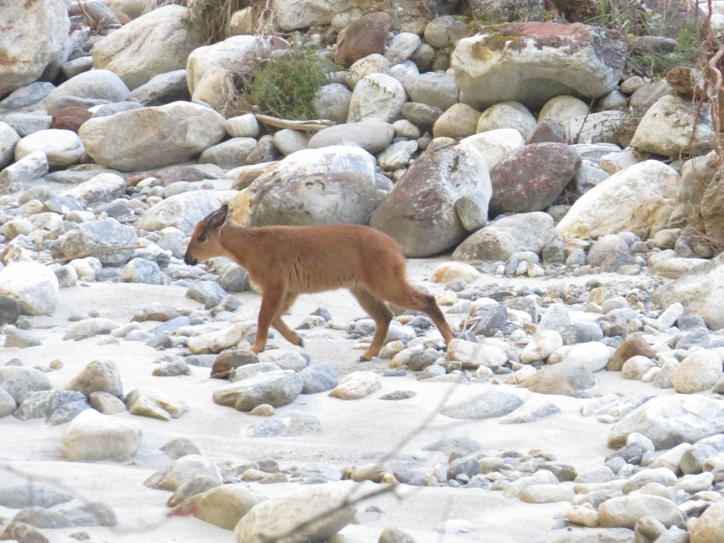 “养在深闺人未识”的赤斑羚1973年才在西藏首次被发现,总数量不足几千头,是国家和西藏自治区一级重点保护陆生野生动物。西藏察隅、波密、米林、墨脱、林芝县是它们的主要生活地。近年,在喜马拉雅山脉中西部吉隆、定日、定吉、洛扎县也发现了它们的足迹。它的基因价值、生态学价值还有待科学家进一步追踪研究。